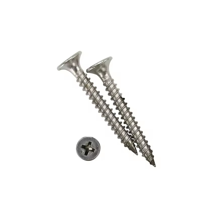 Stainless steel drywall screw designed for fastening drywall to wood or metal studs. Renowned for their versatility, they are used extensively in the construction and home-improvement sectors.Constructed from stainless steel, these screws possess characteristics such as impressive durability, high resistance to corrosion, and strength. Stainless steel is a desirable material for many applications given that it can withstand a variety of environmental conditions, indoor or outdoor, without diminishing in performance. The use of stainless steel makes the screw ly suited for areas prone to moisture exposure, like bathrooms or kitchens, where resistance to corrosion is essential.Drywall screws have a bugle head, a design trait that allows the screw to sit flush or even slightly below the surface of the drywall once installed. This attribute prevents the paper surface of the drywall from tearing during installation and promotes a clean, flat finish.